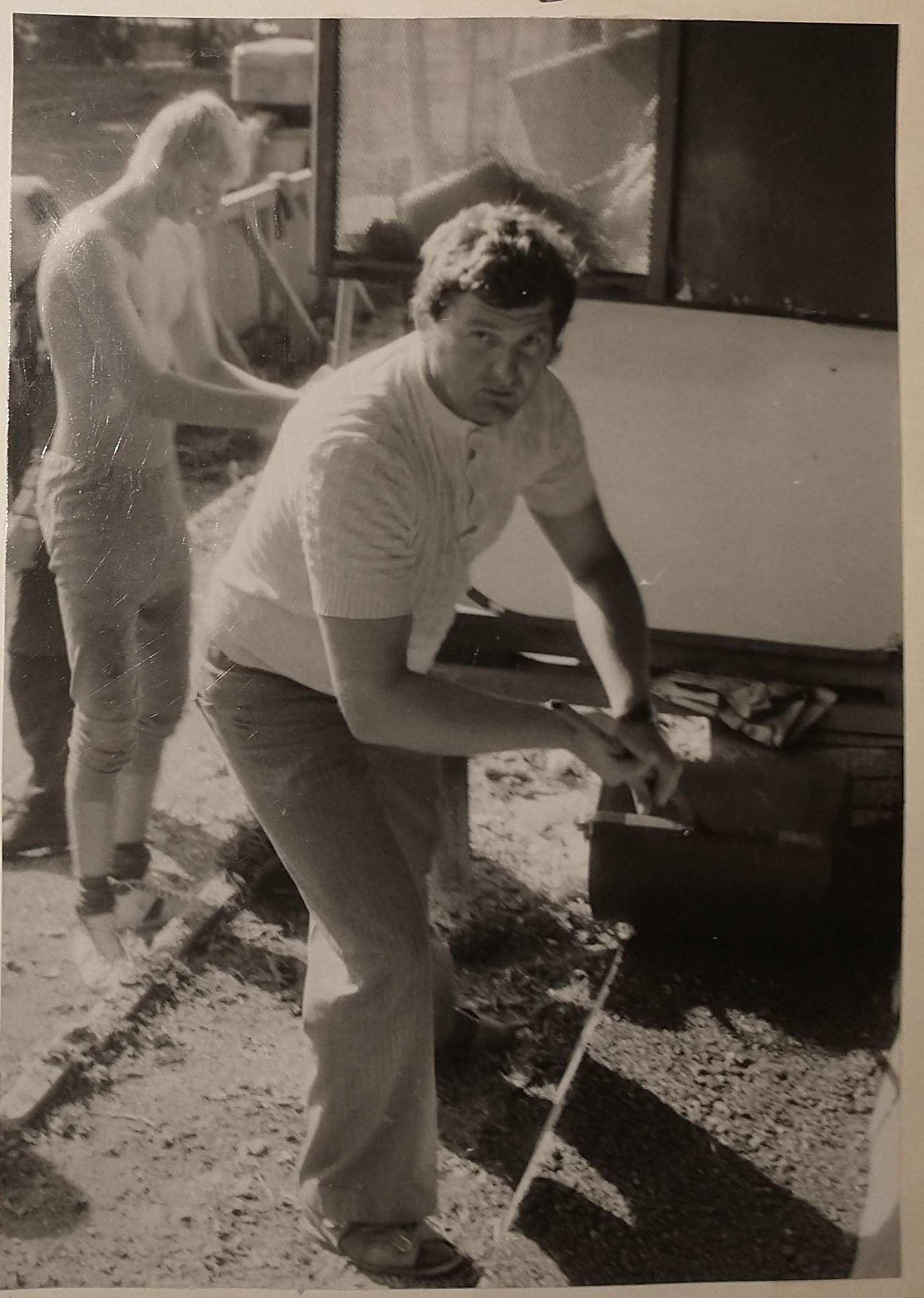 Na snímke Milan Nedorost a Jiří Shejbal pri asfaltovaní ochozov.